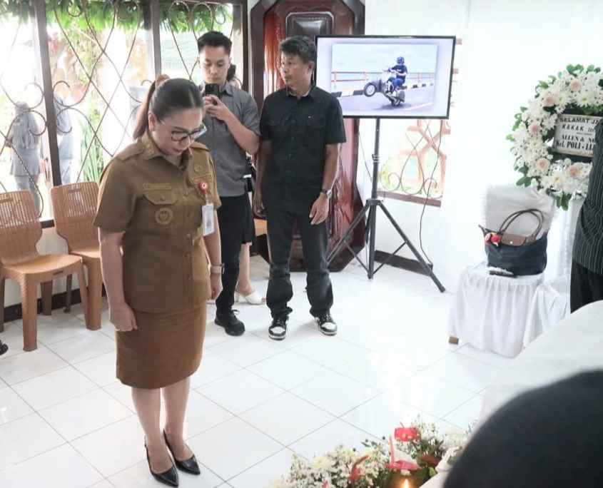 Tomohon, 20 Oktober 2025 — Wakil Bupati Minahasa, Ibu Vanda Sarundajang, SS, hadir langsung di rumah duka Almarhum Aryan Teddy Poli, SSTP, MAP, putra dari Direktur IPDN Sulawesi Utara, Dr. Drs. Arnold Poli, SH, MAP dan Ibu Ponamon, yang berlokasi di Kelurahan Kuranga, Kecamatan Tomohon Tengah, Kota Tomohon. Senin 20/10/2025.