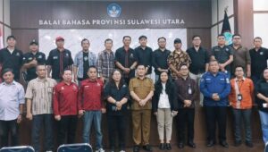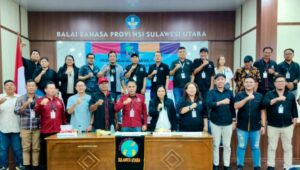 Kepala Balai Bahasa Provinsi Sulut Januar Pribadi SiP, MM (diwakili Ketua Tim Pembinaan Balai Bahasa Anas Nurdin S.S M.Hum).
