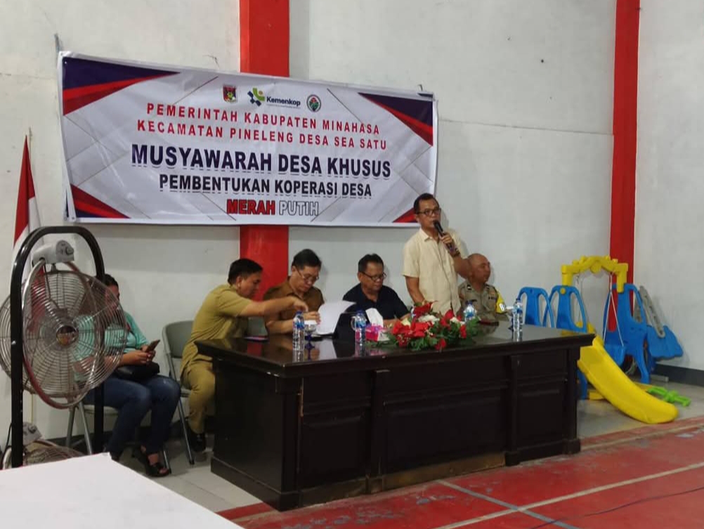 MINAHASA – Semangat gotong royong dan kemandirian ekonomi desa diwujudkan melalui peresmian Koperasi Desa (Kopdes) Merah Putih di Desa Sea Satu, Kecamatan Pineleng. Pembentukan koperasi ini resmi ditetapkan melalui Musyawarah Desa Khusus (MUSDESUS) Kantor Desa Sea Satu pada tanggal 19 Mei 2025.