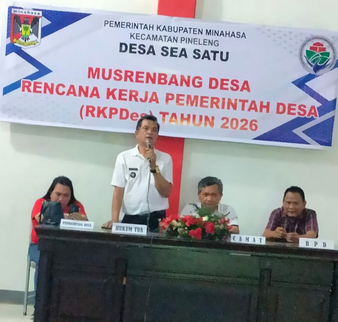 MINAHASA,—Pemerintah Desa Sea Satu, Kecamatan Pineleng, menggelar Musyawarah Desa (Musdes) pada Selasa (12/08/2025) untuk menetapkan Rancangan Kerja Pemerintah Desa (RKPDes) tahun 2026. Fokus utama pembahasan adalah memastikan program pembangunan yang direncanakan benar-benar selaras dengan kebutuhan dan aspirasi masyarakat setempat.